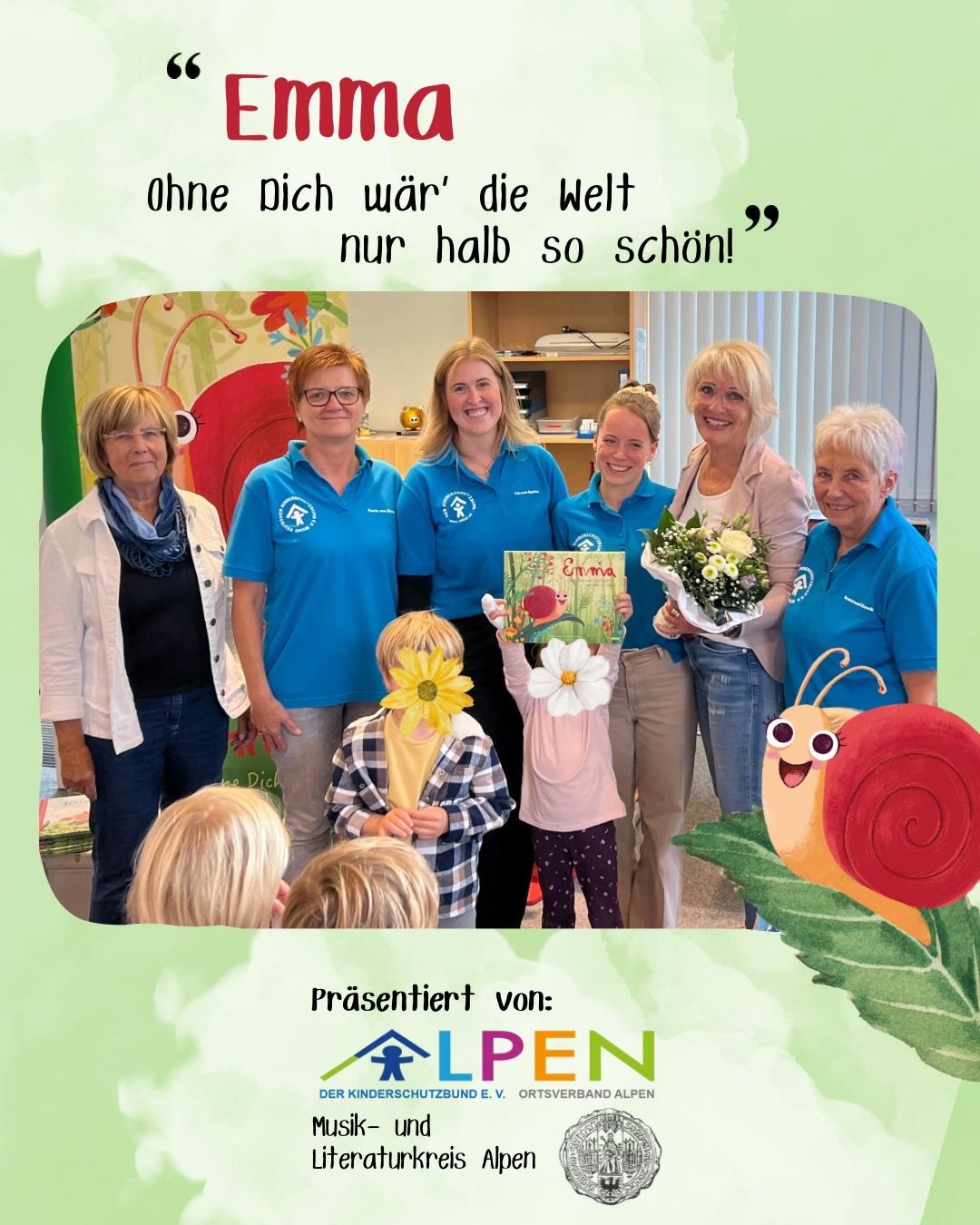 Mit Schnecke Emma zogen die kleinen Zuhörerinnen und Zuhörer gemeinsam durch Wald und Wiesen. Sie sangen, tanzten und entdeckten dabei spielerisch, wie einzigartig und wertvoll jeder Mensch ist.„Solche Veranstaltungen sind für Kinder besonders relevant, weil sie nicht nur Freude am Lesen und an Musik wecken, sondern auch Fantasie und Selbstbewusstsein fördern. Gleichzeitig stärken sie das Gemeinschaftsgefühl in unserer Gemeinde“, betonte Karin van Bonn, Vorsitzende des Kinderschutzbundes Alpen.